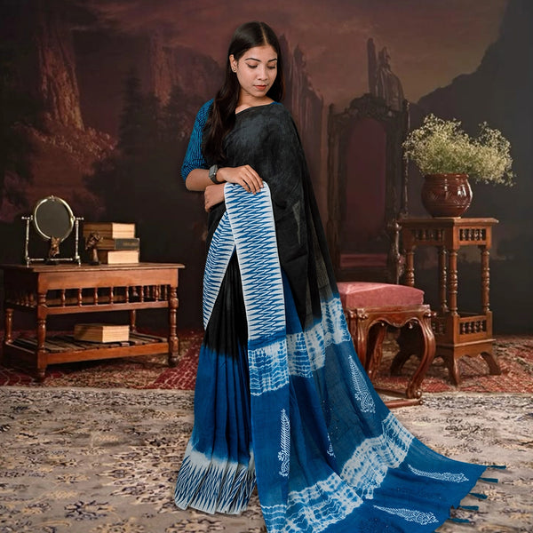 SrijaX ensures the Indigo NoirX saree quality, delivering a refined handcrafted finish with comfort in every drape, ideal for festive and cultural wear.
